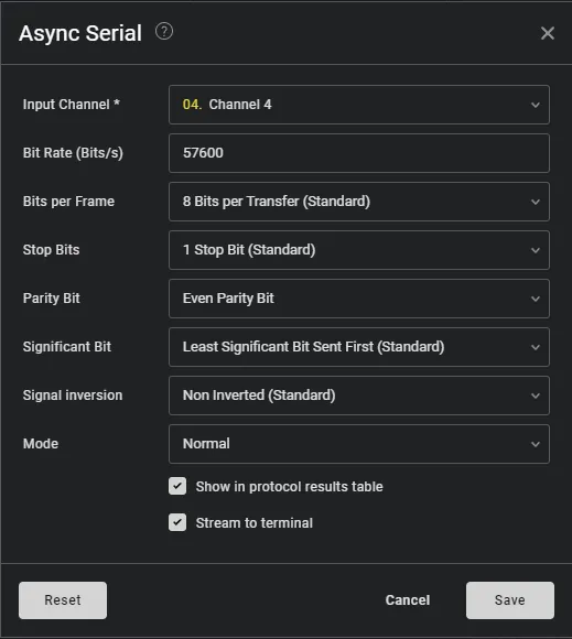 Provided the logic file and a great hint that it’s a serial communication To get the communication we just need to set the correct serial analyse and we get the flag.